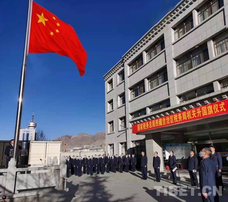 圖為2月21日,國家稅務(wù)總局西藏自治區(qū)稅務(wù)局機(jī)關(guān)舉行升國旗儀式