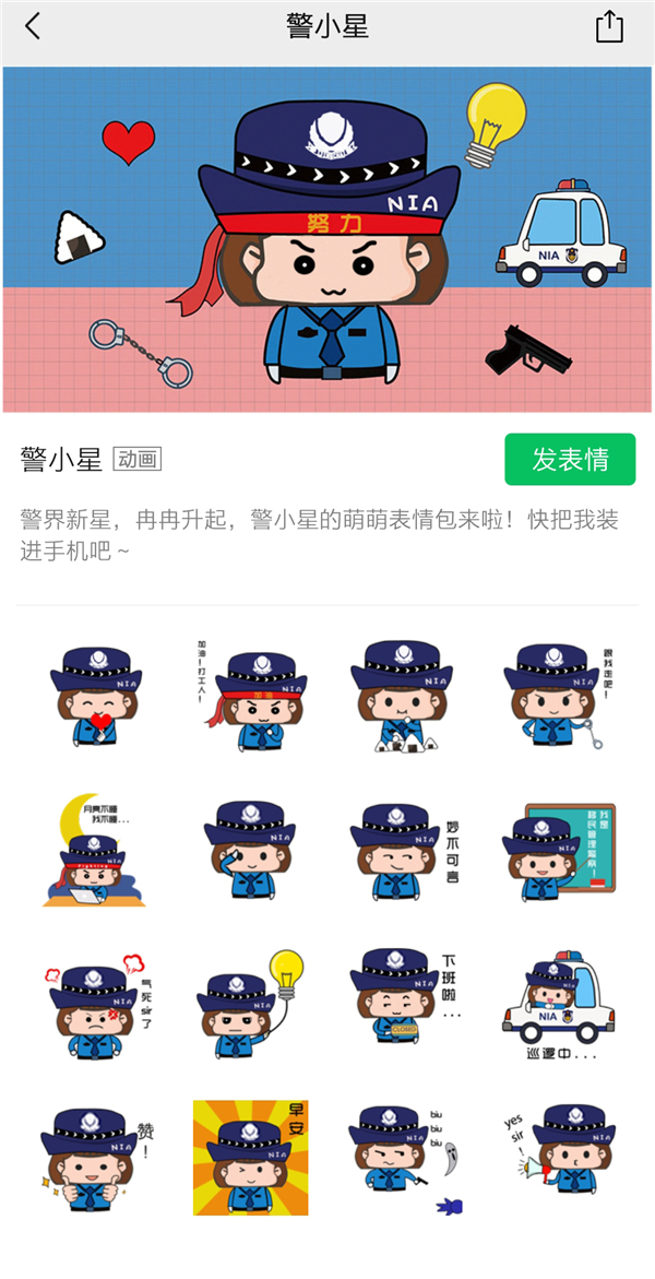 “每一個(gè)表情的背后都有一段真實(shí)的警察故事。”龍小鳳說,加班到凌晨2點(diǎn)的真實(shí)體驗(yàn)誕生了女警版“加油吧 打工人”,看見女警們在一線辛苦執(zhí)勤巡邏,誕生了女警版“巡邏中”。 為何給這名呆萌的“女警”取名警小星?龍小鳳解釋,“ ‘警小星’就是‘警界冉冉升起的新星’的意思”。