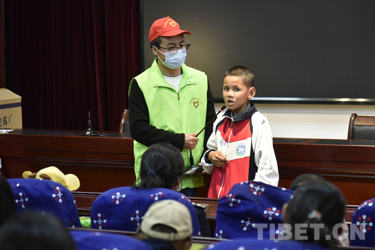 在拉薩市特殊學(xué)校會(huì)議室里,志愿者和特校兒童聊天談心、互動(dòng)游戲,會(huì)議室里不時(shí)傳來(lái)陣陣掌聲和歡笑聲。