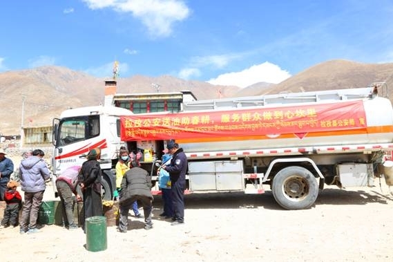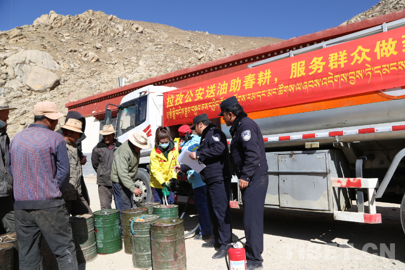 因拉孜縣彭措林鄉(xiāng)、扎西崗鄉(xiāng)地處偏遠,村民購買柴油困難,拉孜縣公安局及時與相關(guān)部門和中國石油拉孜分公司溝通協(xié)調(diào),適時掌握群眾用油需求,成立了拉孜公安送油小分隊,指派專職民警跟著油車送油助春耕,將便民、惠農(nóng)服務(wù)延伸到田間地頭,讓群眾不出村就可以加到放心的柴油。