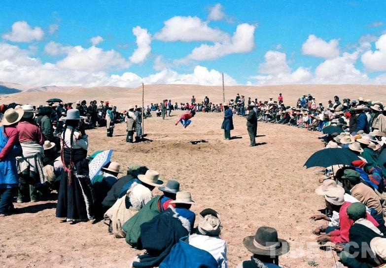 圖為在文部辦事處(現(xiàn)改為尼瑪縣)賽馬會(huì)上,所舉行的跳遠(yuǎn)比賽(唐召明1987年攝)