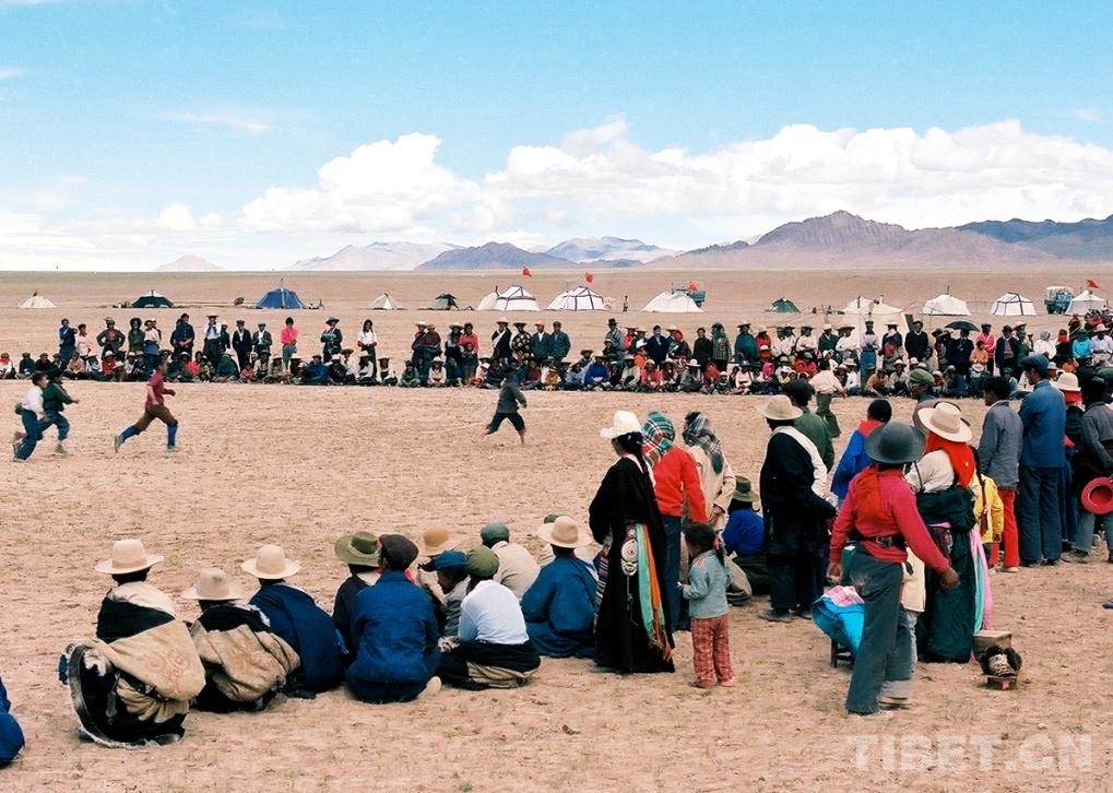 圖為在文部辦事處(現(xiàn)改為尼瑪縣)賽馬會(huì)上,所舉行的長(zhǎng)跑比賽(唐召明1987年攝)