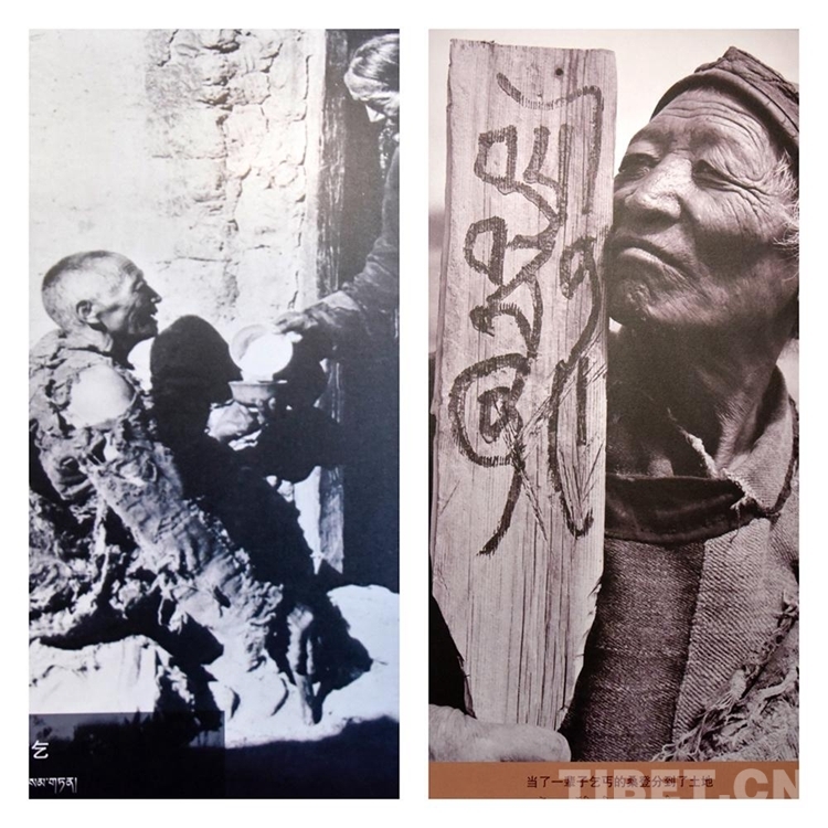 圖為拼圖照片,左圖為桑登求乞,右圖為桑登分到土地 翻拍自西藏百萬農(nóng)奴解放紀念館