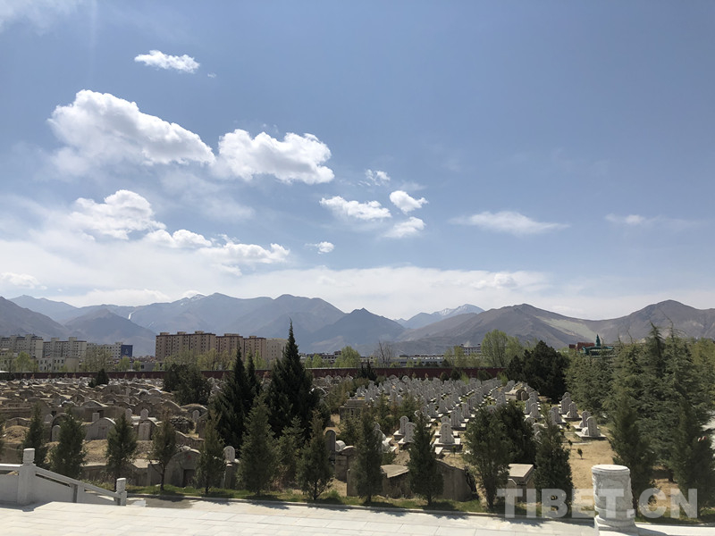 當(dāng)晚入住酒店,因?yàn)閾?dān)心大家身體對(duì)高海拔環(huán)境不適應(yīng),沒有安排什么活動(dòng),晚餐后早早休息。次日一早,我們前往位于拉薩西郊的拉薩烈士陵園。路過花店,精心挑選菊花、向日葵等鮮花做成的花束,并挑選了幾條潔白的哈達(dá)。