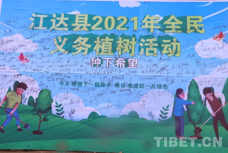 圖為參與義務(wù)植樹活動簽名