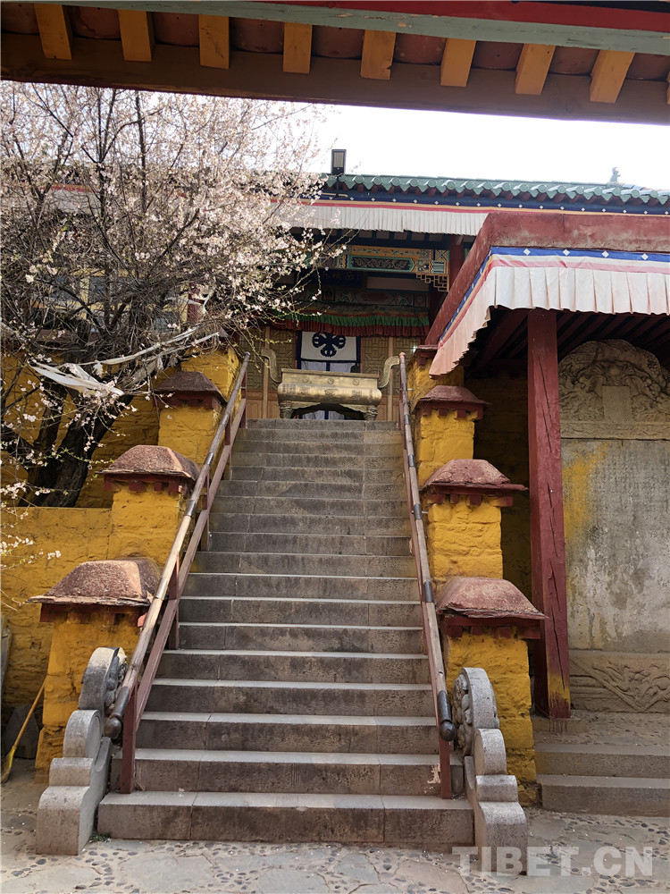這段碑文充分表明了,清朝中央政權(quán)對(duì)西藏地方的守護(hù)和管理。也表現(xiàn)出建廟立碑者大將軍福康安的胸襟和氣魄。在看碑文時(shí),腦子里浮現(xiàn)出那場(chǎng)發(fā)生在18世紀(jì)的戰(zhàn)爭(zhēng),清朝大將軍福康安率領(lǐng)滿漢蒙藏各民族組成的騎兵,刀劍相錯(cuò)、血雨腥風(fēng)的畫面。一抬頭,廟中院子里卻靜謐異常,只有那株開滿花的桃樹,散落幾片花瓣,似乎在隨我一同追憶和祭奠這段歷史中的高光時(shí)刻。這段歷史中充滿了各種有益于我們這個(gè)時(shí)代的精神內(nèi)核,不畏艱險(xiǎn)保家衛(wèi)國(guó)、各民族兄弟同仇敵愾、對(duì)共同民族英雄的認(rèn)可等,這些都凝聚在這個(gè)安靜的上午,這座名字很獨(dú)特的小廟之中。抬起頭,從關(guān)帝廟的正門,往外望去,整個(gè)拉薩城充滿活力和現(xiàn)代氣息地展現(xiàn)在眼前,這座寺廟的靜謐似乎正像廟中供奉的兩位英雄一樣,默默地守護(hù)著這座城市的煙火氣息。