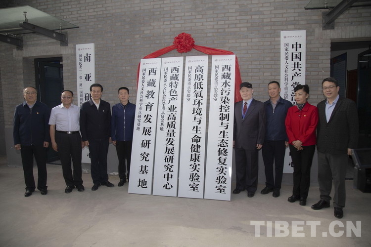 研討會開幕式之前,與會領(lǐng)導(dǎo)為西藏教育發(fā)展研究基地、西藏特色產(chǎn)業(yè)高質(zhì)量發(fā)展研究中心、高原低氧環(huán)境與生命健康實驗室、西藏水污染控制與生態(tài)修復(fù)實驗室同時掛牌揭幕。大會主旨發(fā)言之后,西藏民族大學(xué)黨委常委、副校長史本林、西藏駐格爾木辦事處(藏青工業(yè)園區(qū))黨委書記邱川共同簽訂雙方合作框架協(xié)議,旨在加強科研交流合作,共同為西藏社會高質(zhì)量發(fā)展做出貢獻。