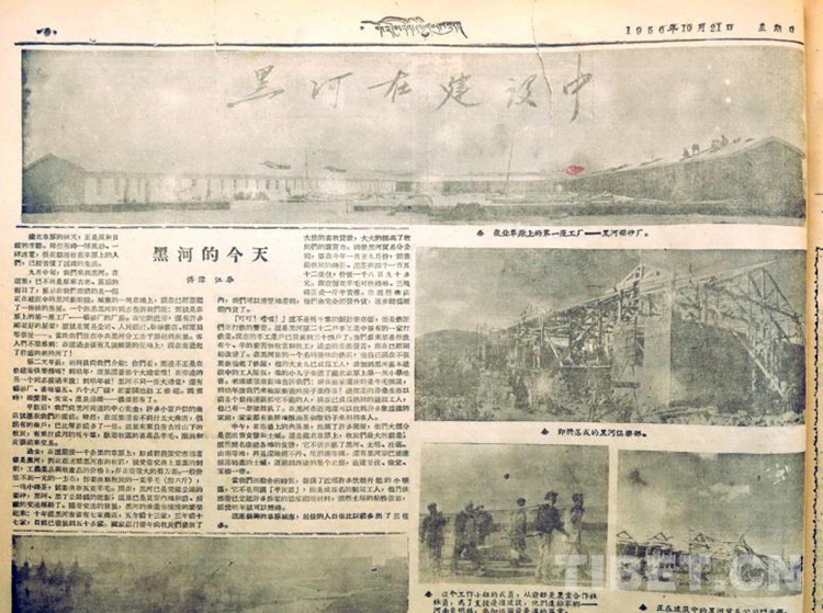 這是1956年10月21日新聞報道“黑河在建設中”的《西藏日報》(唐召明翻拍圖片)
