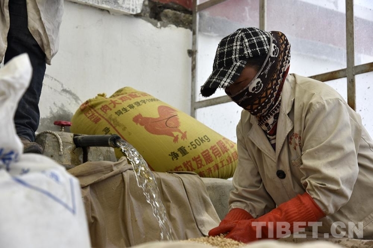 圖為2021年4月,西藏自治區(qū)阿里地區(qū)普蘭縣西德村村民正在西德稞原地食品有限公司工廠里淘洗青稞 攝影:王媛媛