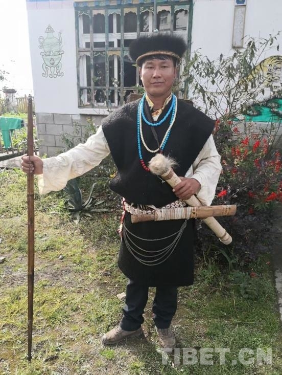 圖為西藏自治區(qū)林芝市墨脫縣達(dá)木珞巴民族鄉(xiāng)達(dá)木村村民羅布身著珞巴族傳統(tǒng)服飾 圖片由羅布提供