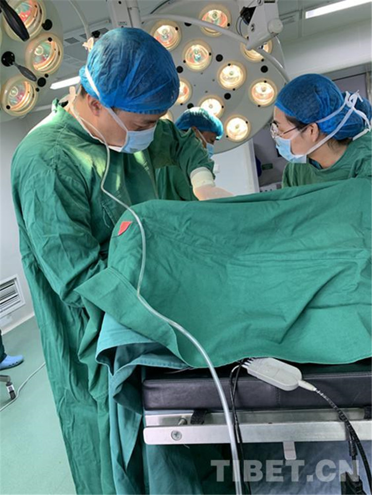 圖為援藏專家為患者做手術(shù) 圖片由受訪者提供