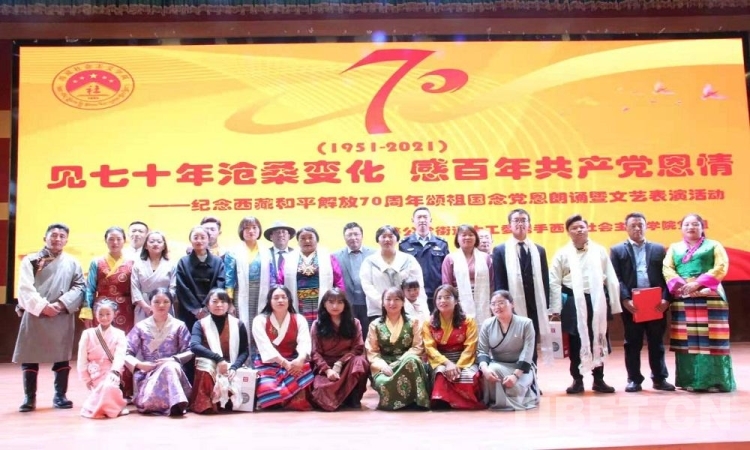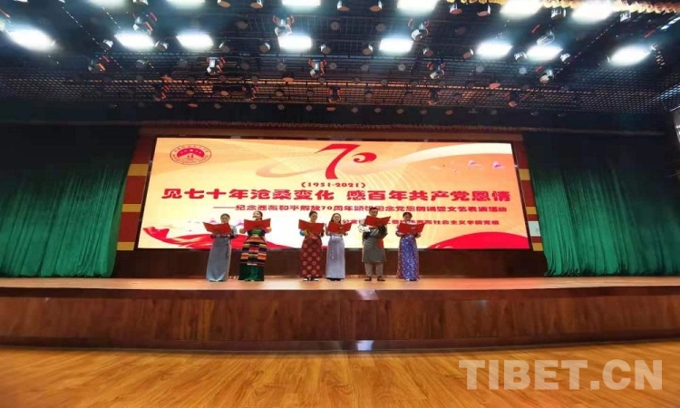 5月23日是西藏和平解放70 周年紀(jì)念日。23日上午,由西藏自治區(qū)拉薩市蔡公堂街道和西藏社會(huì)主義學(xué)院共同舉辦的紀(jì)念西藏和平解放70周年頌祖國、念黨恩朗誦暨文藝表演活動(dòng)舉行?,F(xiàn)場鮮花嬌艷,燈光炫目,旋律悠揚(yáng),歌聲嘹亮。
