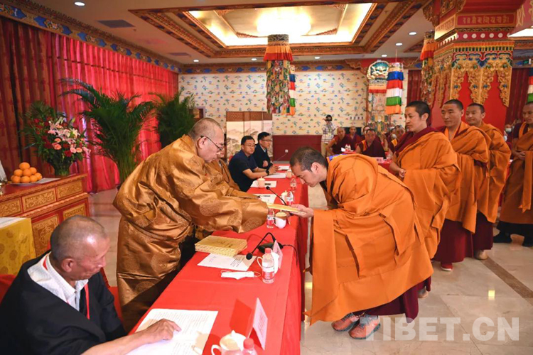 中國(guó)西藏網(wǎng)訊 5月23日,藏傳佛教第十七屆“拓然巴”高級(jí)學(xué)銜授予儀式在北京西黃寺中國(guó)藏語(yǔ)系高級(jí)佛學(xué)院舉行。來(lái)自藏傳佛教覺(jué)囊派、薩迦派、格魯派的33名學(xué)員,經(jīng)過(guò)三年刻苦學(xué)修,通過(guò)嚴(yán)格的課程考核、資格審查、辯經(jīng)考試和論文答辯,獲得藏傳佛教“拓然巴”高級(jí)學(xué)銜。中國(guó)佛教協(xié)會(huì)副會(huì)長(zhǎng)、藏傳佛教學(xué)銜工作指導(dǎo)委員會(huì)主任、中國(guó)藏語(yǔ)系高級(jí)佛學(xué)院院長(zhǎng)嘉木樣活佛頒發(fā)學(xué)銜證書(shū)。