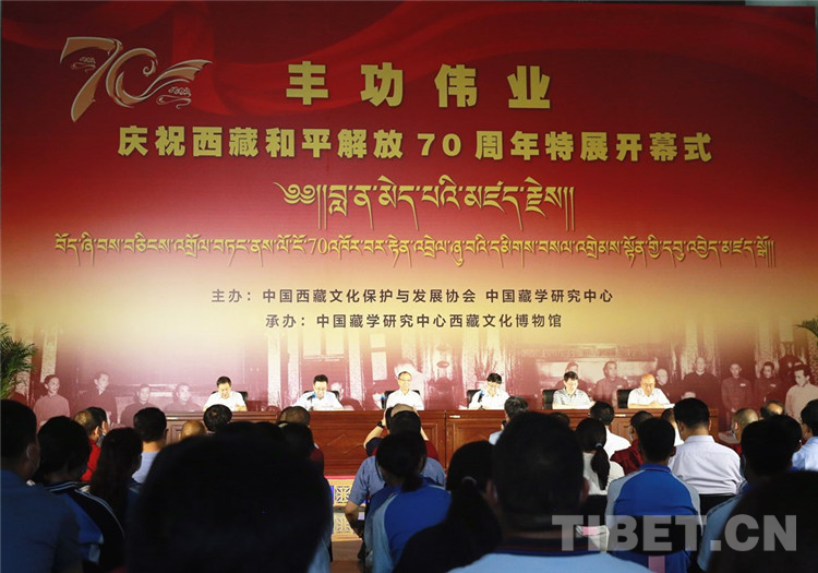 中國西藏網(wǎng)訊 2021年6月29日,由中國西藏文化保護(hù)與發(fā)展協(xié)會(huì)、中國藏學(xué)研究中心主辦的“豐功偉業(yè)——慶祝西藏和平解放70周年特展”在中國藏學(xué)研究中心西藏文化博物館開幕。中國西藏文化保護(hù)與發(fā)展協(xié)會(huì)副會(huì)長斯塔、中國藏學(xué)研究中心黨組書記陳宗榮出席開幕式并致辭。中國藏學(xué)研究中心總干事鄭堆主持開幕式。中央宣傳部、中央統(tǒng)戰(zhàn)部相關(guān)同志和有關(guān)專家學(xué)者等百余人參加開幕式。