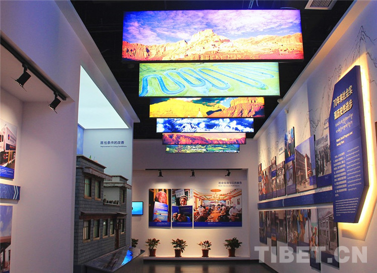 據(jù)陳宗榮介紹,“豐功偉業(yè)”展覽以西藏和平解放70年光輝歷程為主線,設(shè)計(jì)了“社會(huì)制度實(shí)現(xiàn)偉大飛躍”“新時(shí)代新飛躍”“西藏的發(fā)展進(jìn)步根本在于中央的關(guān)心”等7個(gè)主題展區(qū)。展覽運(yùn)用350多幅圖片、61件(套)珍貴實(shí)物和文獻(xiàn),采用虛擬現(xiàn)實(shí)、多媒體互動(dòng)等現(xiàn)代科技手段,利用實(shí)物模型、場景復(fù)原、幻影成像、三維模型等多種形式,集中展現(xiàn)了70年來西藏發(fā)生的歷史性轉(zhuǎn)變、取得的歷史性成就。