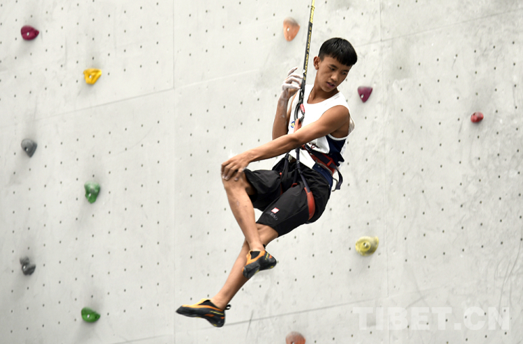 圖為專業(yè)運動員進行攀巖表演 攝影:王媛媛