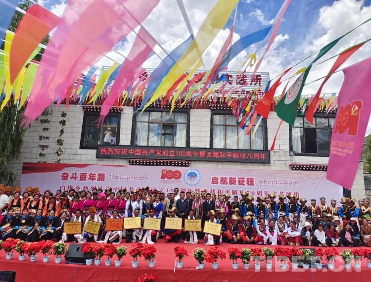 為慶祝中國(guó)共產(chǎn)黨成立100周年暨西藏和平解放70周年, 7月1日,白堆鄉(xiāng)還舉辦了第三屆民間文藝匯演。縣民間藝術(shù)團(tuán)、各村文藝演出隊(duì)和鄉(xiāng)機(jī)關(guān)干部用舞蹈與歌聲展現(xiàn)出人們的美好生活以及對(duì)黨的感恩對(duì)祖國(guó)的熱愛(ài)。通過(guò)精彩的文藝節(jié)目,弘揚(yáng)奮斗精神,謳歌黨的光輝歷程。