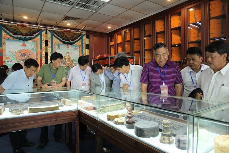 圖為與會(huì)的諸位嘉賓在喜馬拉雅文庫考察、觀摩了藏醫(yī)藥古籍文獻(xiàn)