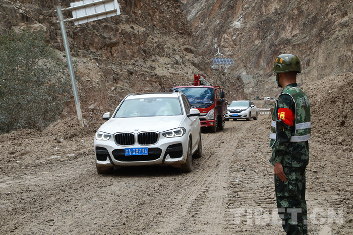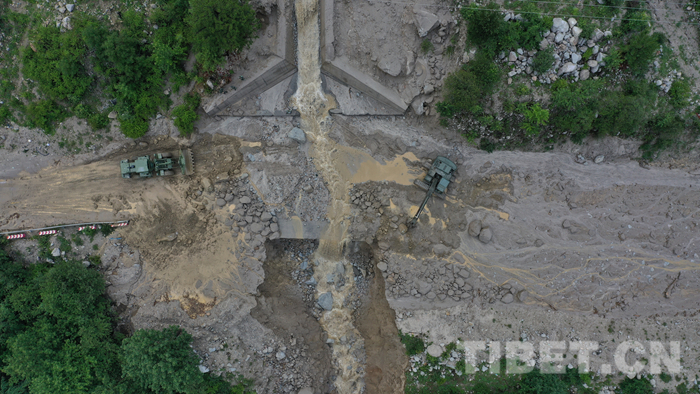 圖為川藏線波密縣境內(nèi)玉普鄉(xiāng)境內(nèi)泥石流受損道路