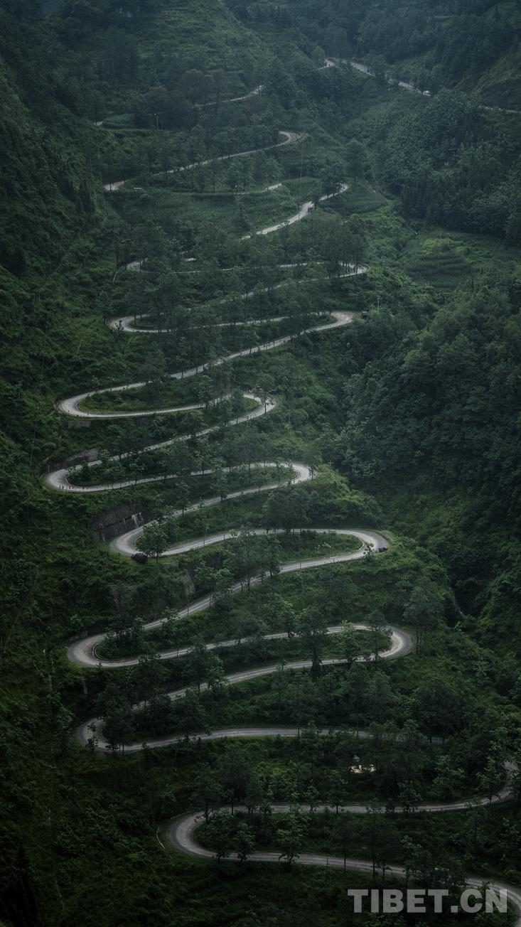 中國西藏網(wǎng)訊 俯瞰貴州省黔西南州晴隆縣,晴山千峰翠,隆地萬物華,二十四道拐如蛟龍一般盤踞在高山深谷間,蔚為壯觀。