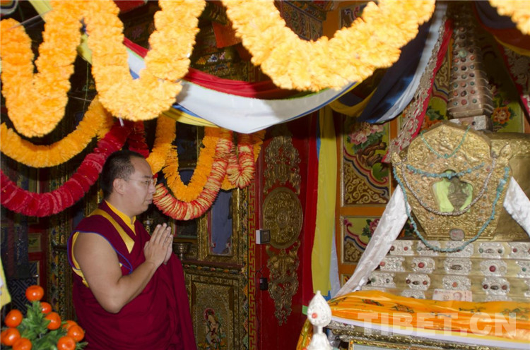 圖為班禪在六世格達(dá)活佛靈塔前 攝影:歐帆
