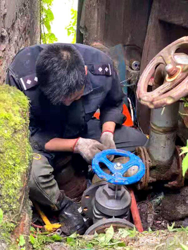 8月16日凌晨,樟木口岸夜晚因突如其來的暴雨造成了泥石流,滾落的石頭擊中了水閘閥門,導(dǎo)致閥門損壞,無法正常通水,從而影響了商貿(mào)城執(zhí)勤點民警正常的飲水。該執(zhí)勤點是根據(jù)口岸限定區(qū)域的需要新增設(shè)的點位,民警需要全天候24小時駐守,由于補給較為困難,民警需要用開水煮泡面、自熱米飯等吃飯成了問題。情急之下,民警趙廣發(fā)冒著大雨,頂著被螞蟥咬的危險,憑著自己所學(xué)的維修知識,花費了近3個小時,硬著頭皮把它維修好了。