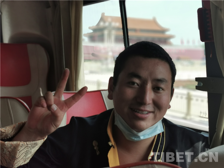 圖為因?yàn)橐咔榉揽匾螅荒馨才畔萝?chē)拍照留影,這位患者很高興在車(chē)上與天安門(mén)合影