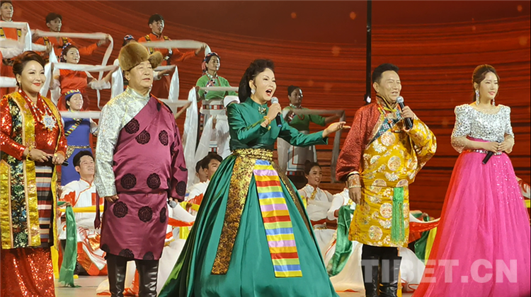 “來了!來了!吉祥的日子來了!升起了!升起了!幸福的太陽升起來了!”“我們雙手捧起圣潔的銀碗!我們雙手托起吉祥的哈達(dá)!我們唱起最美的贊歌!感恩黨,感恩祖國(guó),感恩幸福生活!”文藝演出在大型歌舞表演《扎西德勒》中拉開序幕。