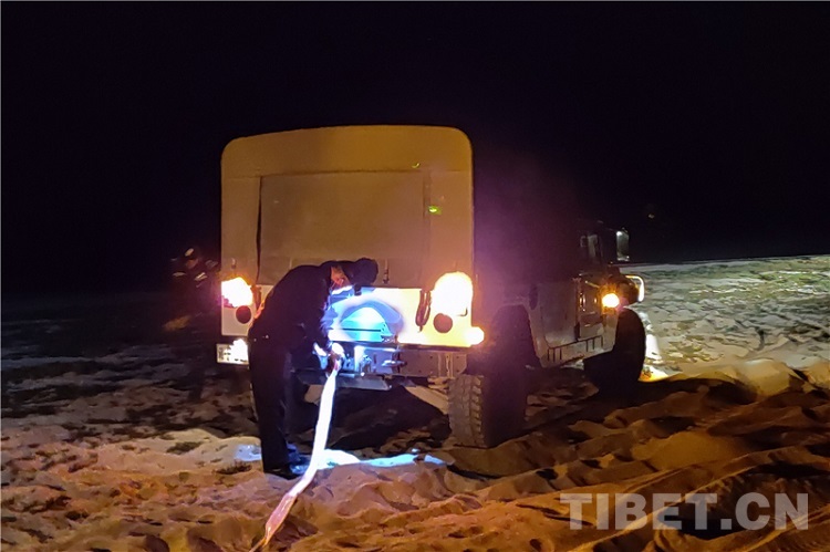 據(jù)了解,3名游客在自駕游玩過程中,想前往拉昂錯湖邊停留一會再前往縣城。由于天黑視線模糊,在湖邊行駛時誤入沙地,立即開始倒車自救,但由于沙土松軟,車輛左右搖擺,越陷越深。在觀察、詢問無人員受傷或身體不適后,救援民警立即開展救援工作。