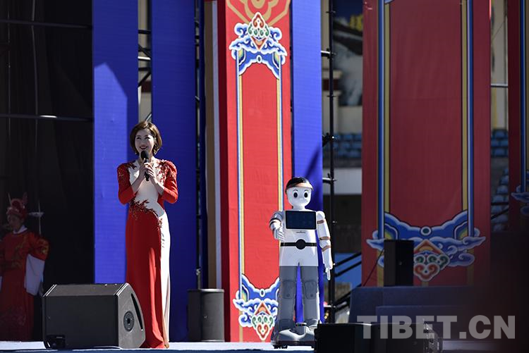 圖為2021雅礱文化旅游節(jié)開幕式文藝演出現(xiàn)場,主持人與機(jī)器人互動 攝影:王媛媛