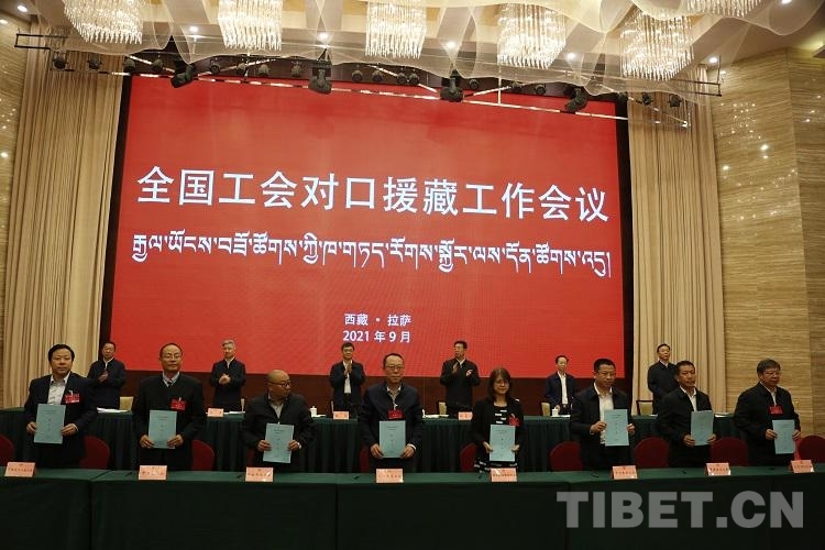 在會議現(xiàn)場,承擔援藏任務的各省市總工會、央企工會和西藏各市(地)工會現(xiàn)場簽訂了涉及628個援助項目,約3.5億元的援助協(xié)議。其中,超4400萬元將用于“高原職工氧吧”項目,為覆蓋人數(shù)較多的職工服務中心、勞動強度大的工作場所和生活條件艱苦的邊境鄉(xiāng)鎮(zhèn)提供供氧設備,緩解西藏高海拔地區(qū)供養(yǎng)難題,切實改善西藏各族職工的工作休息條件。