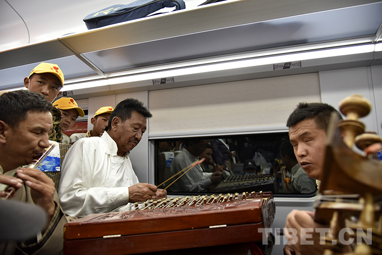 圖為9月25日D8981次動車上,視障人士為乘客表演節(jié)目 攝影:王媛媛
