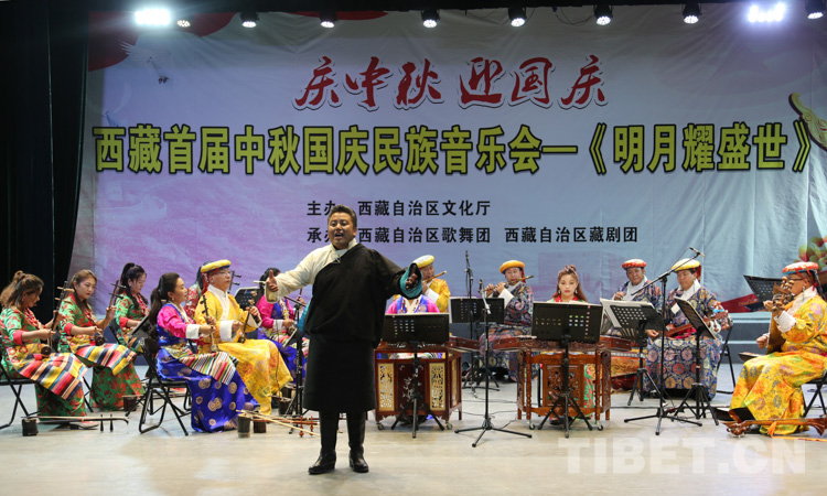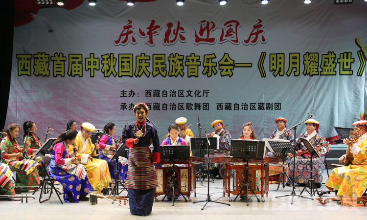 中國西藏網(wǎng)訊 器樂齊奏、堆諧奔放、歌曲悠揚(yáng)……9月25日晚,一臺(tái)以“享民樂美、敘佳節(jié)情”為主題的民族音樂會(huì)——《明月耀盛世》在西藏自治區(qū)藏劇團(tuán)上演。作為西藏自治區(qū)首屆中秋國慶民族音樂會(huì),音樂會(huì)營造了濃厚喜慶的節(jié)日氛圍。