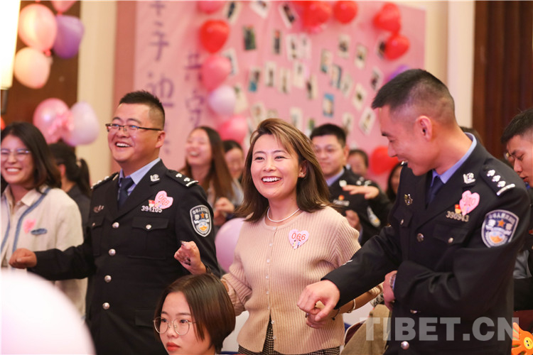 活動(dòng)過程中,總站形象宣傳片《我是誰(shuí)》,向女嘉賓們展現(xiàn)了西藏移民管理警察的職業(yè)特點(diǎn),使女嘉賓對(duì)民警工作職責(zé)產(chǎn)生了初步的認(rèn)識(shí)。在主持人的引導(dǎo)下,精彩的才藝展示和豐富的游戲環(huán)節(jié)很快將現(xiàn)場(chǎng)氣氛推向一個(gè)接一個(gè)的高潮。互動(dòng)游戲“牽手牽愛”“心有靈犀”“守護(hù)愛情”“唯愛接力”通過聆聽詩(shī)句抓緊手指、借助比劃你問我答,相互協(xié)助完成任務(wù)等方式增進(jìn)了男女嘉賓之間的了解和默契,促進(jìn)了相互之間更好交流。男女嘉賓才藝表演和日喀則邊境管理支隊(duì)1753樂隊(duì)送上的精彩曲目,令活動(dòng)現(xiàn)場(chǎng)青春洋溢。最終,18對(duì)男女嘉賓互生情愫,牽手成功,36對(duì)交換聯(lián)系方式,開啟更加深入的幸福交流。