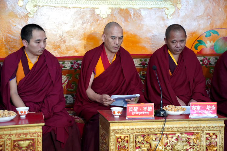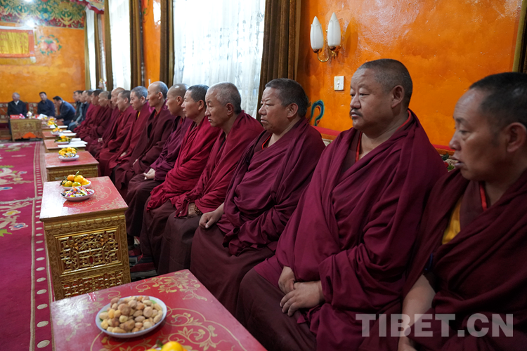 張延清說(shuō),今年,在中國(guó)共產(chǎn)黨成立100周年,西藏和平解放70周年之際,習(xí)近平總書(shū)記作為中共中央總書(shū)記、國(guó)家主席、中央軍委主席到西藏慶祝西藏和平解放,在黨和國(guó)家歷史上是第一次,充分體現(xiàn)了以習(xí)近平同志為核心的黨中央對(duì)邊疆地區(qū)的深情牽掛、對(duì)西藏工作的高度重視、對(duì)西藏各族干部群眾的深厚感情。7月22日下午,習(xí)近平總書(shū)記來(lái)到建寺600多年的哲蚌寺,受到了全寺僧人最高禮遇的迎接。習(xí)近平總書(shū)記充分肯定了哲蚌寺在擁護(hù)中國(guó)共產(chǎn)黨、擁護(hù)社會(huì)主義制度、維護(hù)祖國(guó)統(tǒng)一等方面做出的積極貢獻(xiàn),并關(guān)心詢問(wèn)僧人身體狀況特別是老年僧人健康問(wèn)題,在場(chǎng)的僧人都很感動(dòng)??v觀世界,國(guó)家領(lǐng)導(dǎo)人如此高度重視宗教工作、如此深情關(guān)懷宗教界人士,唯有中國(guó)、唯有中國(guó)共產(chǎn)黨的領(lǐng)導(dǎo)人。知恩、念恩、感恩、報(bào)恩是菩提心的根本。各位僧人朋友們一定要按照習(xí)近平總書(shū)記的指示精神,守法敬業(yè)、愛(ài)國(guó)愛(ài)教、潛心修行、向善為民、利益眾生,真正做慈悲為懷的真佛子。