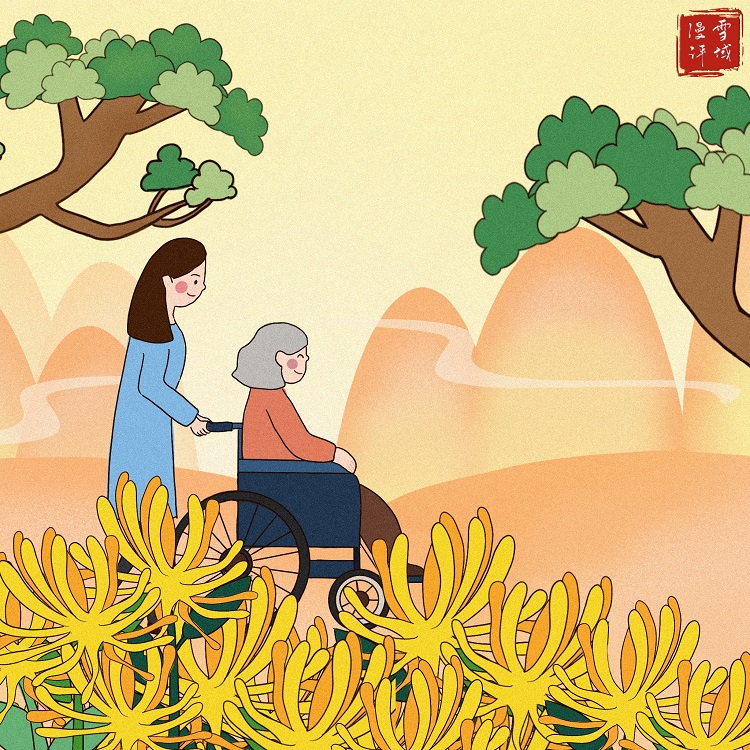 人生易老天難老,歲歲重陽,今又重陽?!罢l言寸草心,報(bào)得三春暉”“老吾老以及人之老”“天下之本在家”,尊敬老人、孝敬父母,敬老孝老正成為新時(shí)代中國的生動生活場景。(中國西藏網(wǎng) 文/王智霖 繪/李絲雨)