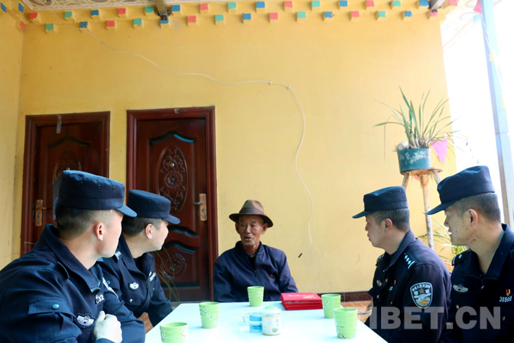 金秋時節(jié),秋高氣爽,10月14日上午,上察隅邊境派出所的民警們一大早將前幾日購買的慰問品,裝到單位車上,準(zhǔn)備前往轄區(qū)米古村老黨員卡布羅的家,給他送重陽節(jié)的暖意問候。當(dāng)看到邊境派出所的民警到家中時,年近八旬的卡布羅老人熱情地招呼民警們進屋坐下,并為民警們倒上熱騰騰的酥油茶。