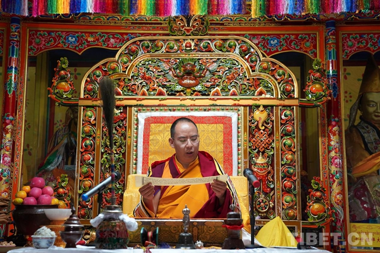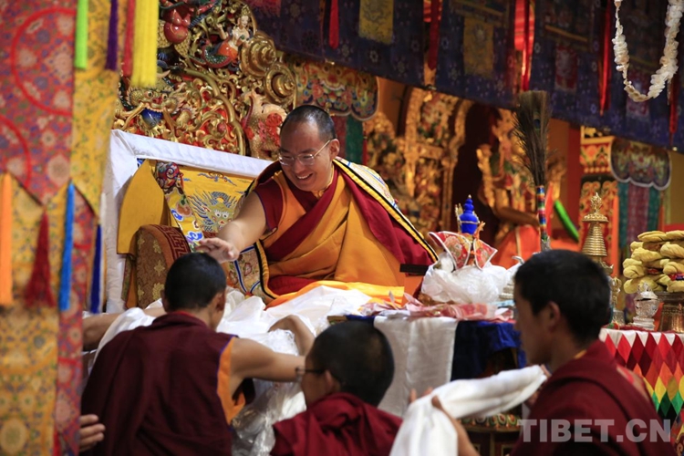 圖為班禪在增寺拋灑青稞、祈愿豐收 攝影:王淑