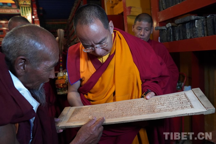 圖為班禪在納塘寺觀摩印版 攝影:王淑