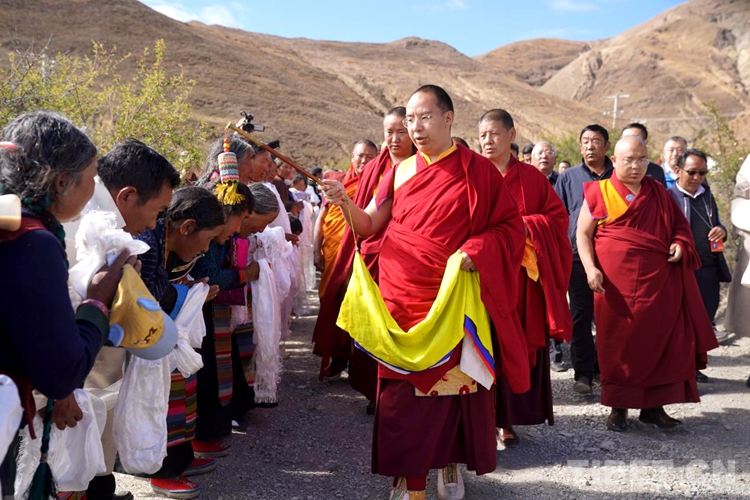 在海拔4600米的呂龍寺,迎接班禪僧人隊伍里83歲的僧人崔珍堅參顯得格外引人注目,老僧人激動地對記者說:“十世班禪我見過幾次,活到這把年紀還能見到十一世班禪,是我的一大福分,感到高興幸福!我雖年紀大,但今天無論如何都要跟其他僧人一起來迎接班禪大師?!贝拚鋱詤⒓拥卣f:“我們寺院雖海拔高,離縣城也較遠,但這兩年寺院變化太大了,大殿得到重新維修,僧舍光線充足、通了水電,整個寺院都鋪上了水泥路面。我年紀大了,毛病也多,在拉薩住過幾次醫(yī)院,醫(yī)療費用有醫(yī)??ǎ约翰徊傩?,來回交通也特別方便,寺院還有養(yǎng)老院,我未來的生活是不用擔心的,這都是黨的關(guān)懷和政策好!”說完老人激動地豎起大拇指。