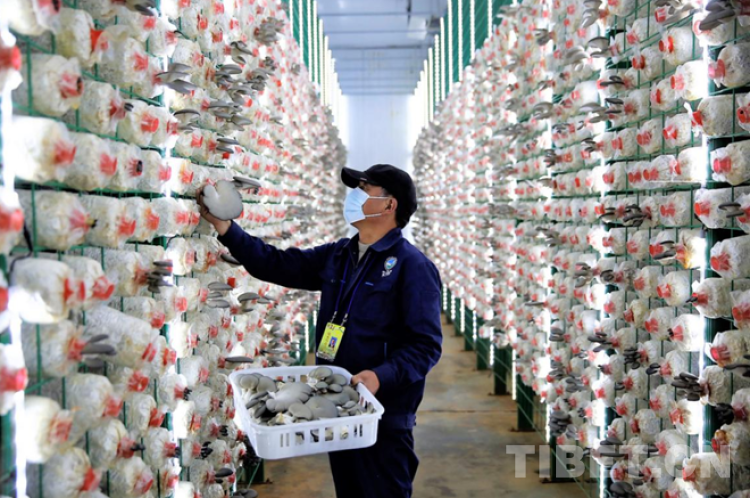 這座位于謝通門縣達那答鄉(xiāng)的食用菌基地占地345畝,建筑面積46.6畝,設(shè)有實驗室、原料庫、滅菌車間、攪拌車間、打包車間、冷卻車間、液體菌種培養(yǎng)室、接種室、菌包培養(yǎng)室、工廠化出菇棚、冷庫等,是西藏自治區(qū)唯一一家集菌棒制作、生物菌生產(chǎn)培育、生物質(zhì)燃料與有機肥制作、種植技能培訓于一體的規(guī)?;?、集約化、標準化、現(xiàn)代化、循環(huán)綠色生物科技示范園區(qū)。