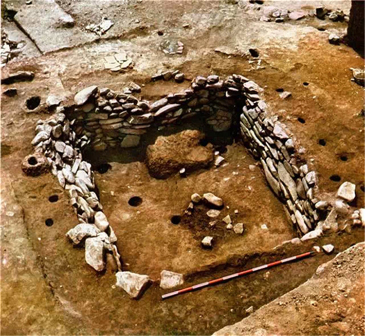4次發(fā)掘,卡若遺址共發(fā)現(xiàn)房屋遺址31座,道路3條,石墻3段,圓石臺2座,石圍圈2座,灰坑20處,水溝1條,遺址面積約3.8萬平方米,其中核心區(qū)域1200平方米左右。出土文物多達3萬余件,包括石器、玉器、骨器、陶器、粟米、動物骨骼等。