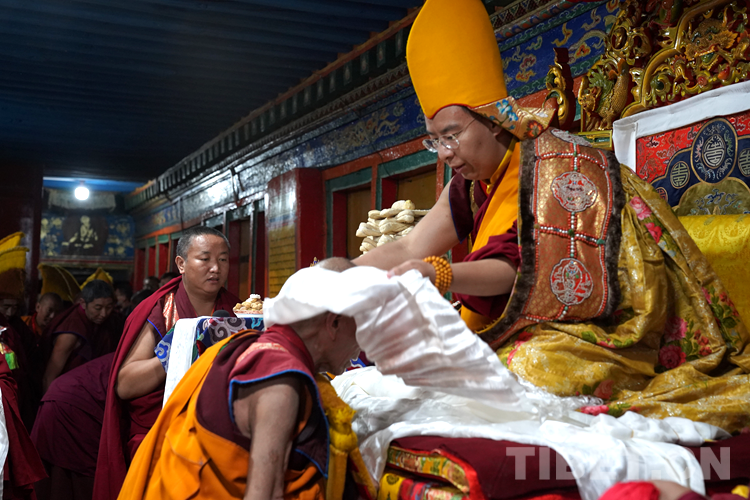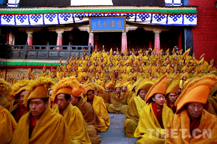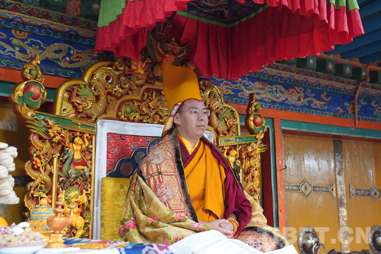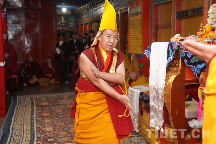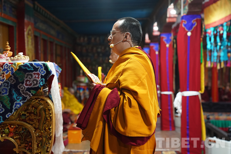 27日(藏歷9月22日),扎什倫布寺舉行祝賀班禪獲得嘎欽學(xué)位吉祥祈愿法會(huì)。班禪向在場(chǎng)所有僧眾摸頂賜福,并與僧眾集體誦經(jīng),回向祈福饒益眾生、法務(wù)昌隆、國(guó)泰民安、風(fēng)調(diào)雨順。