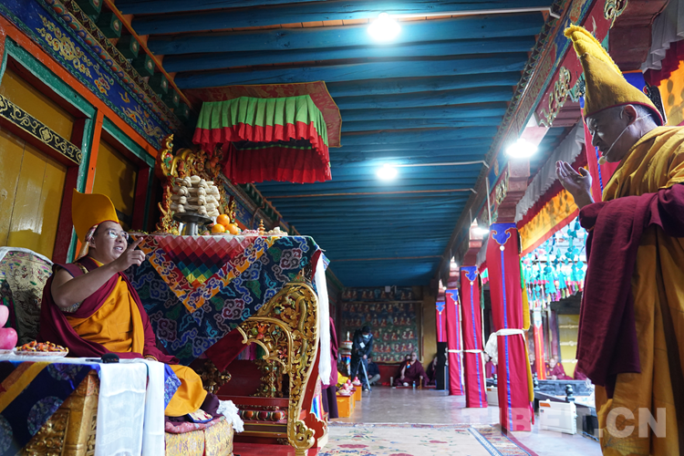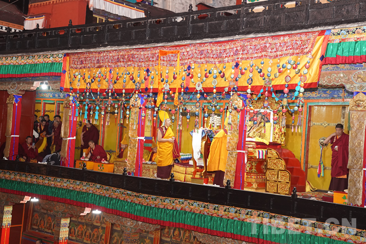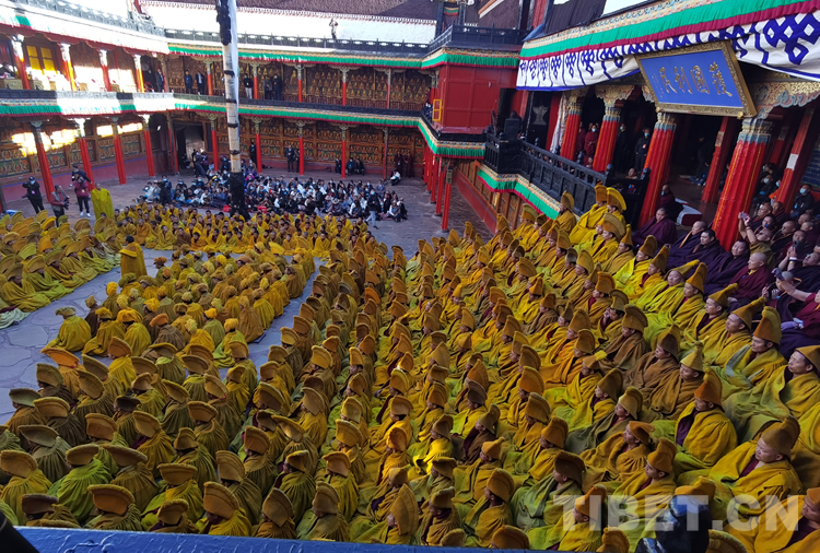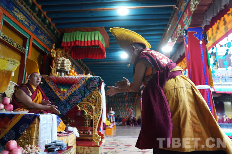 經(jīng)過(guò)數(shù)日準(zhǔn)備,26日下午,班禪于扎什倫布寺參加嘎欽學(xué)位立宗答辯。來(lái)自西藏自治區(qū)藏傳佛教各教派的堪布、經(jīng)師等高僧以及扎什倫布寺僧眾、信教群眾等800人共赴盛會(huì)、共享法喜。