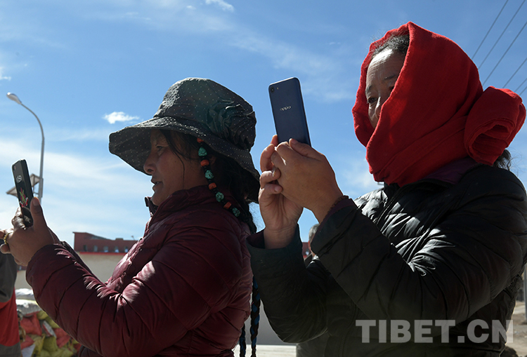 這是聶榮縣色慶鄉(xiāng)帕玉村兩位牧女使用手機了解外面的精彩世界?,F(xiàn)在,藏北高原許多牧民群眾使用上了手機(唐召明2019年9月27日攝)