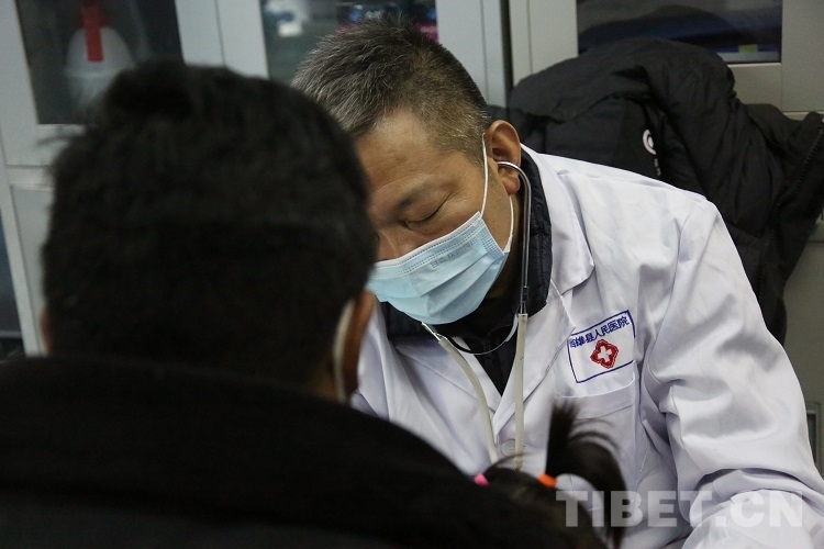 圖為拉薩市本地醫(yī)生協(xié)助進(jìn)行樣品采集 攝影:王佳豪