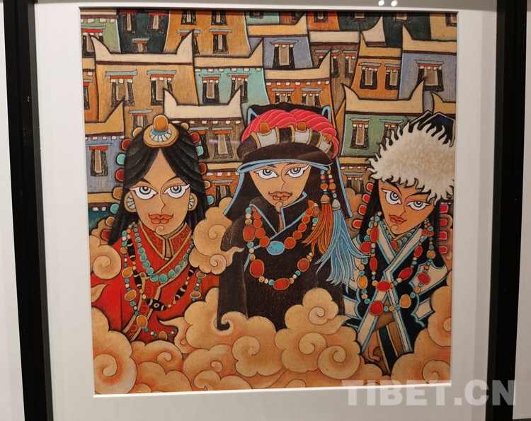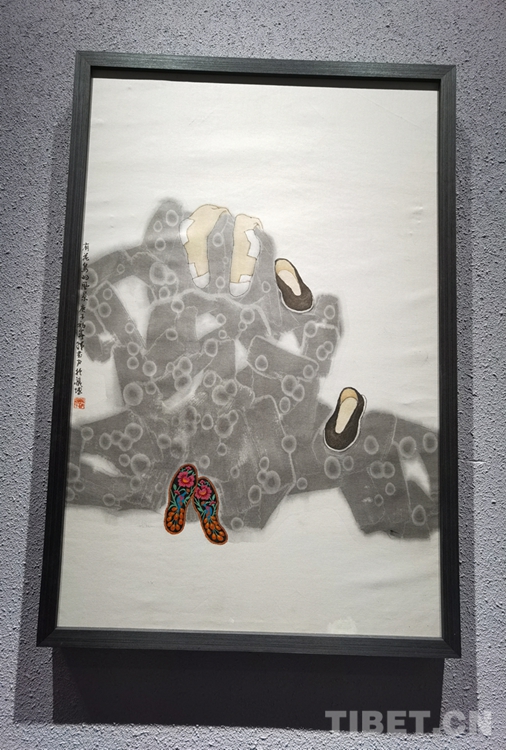 圖為西藏當代美術(shù)作品精品展現(xiàn)場展品 攝影;王淑