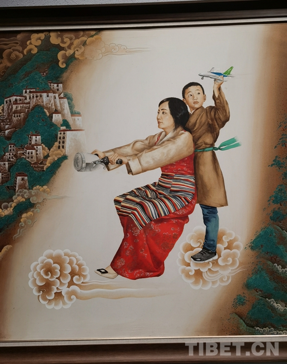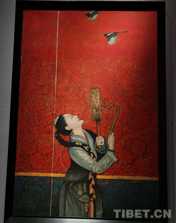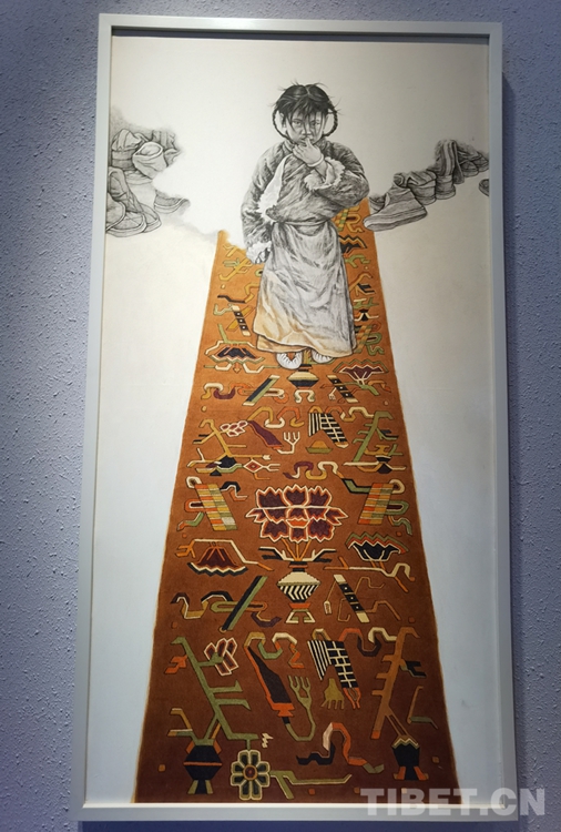 此次展覽共有39位藝術(shù)家的70多幅作品展。藝術(shù)家們在繼承西藏傳統(tǒng)的藝術(shù)形式上,利用西藏特殊元素引入各種畫種之中,并引入新的題材,讓其變得十分廣泛,同時也融合了油畫、水墨畫、水彩、雕塑等。