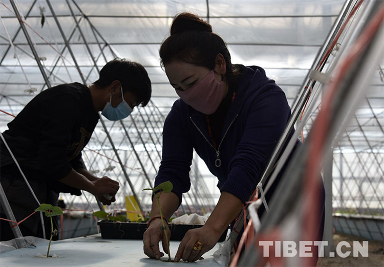 圖為那曲市的浙江援藏鄉(xiāng)村振興產(chǎn)業(yè)示范基地4500智能溫室里當?shù)毓と苏N植蔬菜 攝影:王媛媛