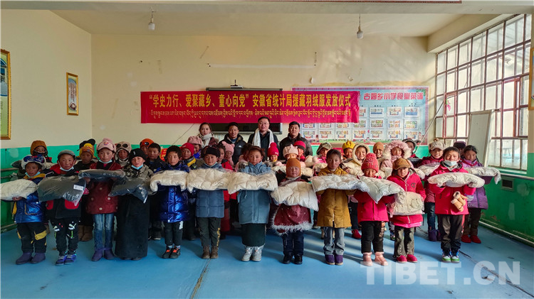 據(jù)了解,活動(dòng)得到西藏自治區(qū)統(tǒng)計(jì)局、安徽省統(tǒng)計(jì)局、安徽省再貸款公司等單位企業(yè)以及愛心人士的積極響應(yīng),短短一個(gè)星期就購買到1013件羽絨服。為讓孩子們?cè)缛沾┥嫌鸾q服,援藏干部們決定立即將羽絨服送到古姆鄉(xiāng)小學(xué)。12月13日一早,他們一早就從拉薩出發(fā),日夜兼程,冒著零下二十多度的低溫大雪天氣,穿過十多個(gè)海拔5000米以上的埡口,行程1500多公里,終于在15日下午16點(diǎn)39分將羽絨服送到了孩子們手中,讓207名孩子在零下30多度寒冬中感受到了春天般的溫暖。
